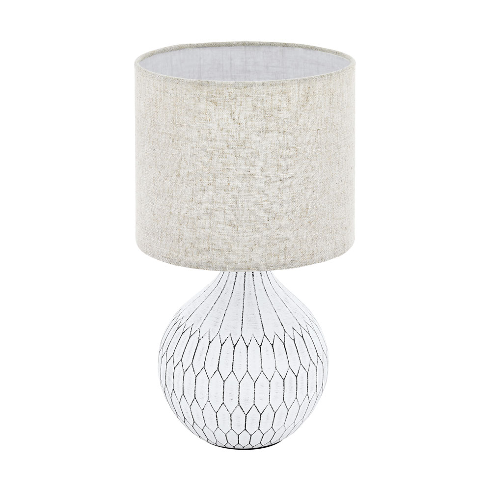 Ausführung: Keramik, weißgrau, braun, Textilschirm Leinen naturbraun