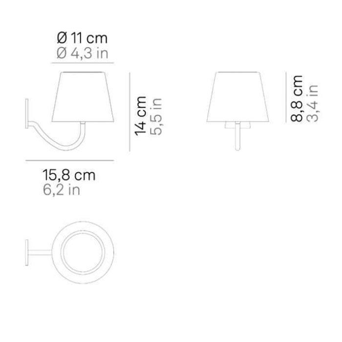 Applique murale rechargeable fonctionnant sur batterie. Un interrupteur tactile situé sur le dessus de la tête permet d'allumer la lampe, de régler l'intensité lumineuse et de choisir la couleur de la lumière. Grâce à son indice de protection élevé, la lampe peut également être utilisée à l'extérieur. Elle dispose d'un système de surveillance électronique qui indique la puissance restante de la batterie, ce qui permet d'optimiser les processus de charge et de les effectuer correctement à tout moment. Elle est équipée d'une tête magnétique qui peut être facilement retirée et rechargée sur la station de contact correspondante ; un chargeur de batterie est inclus dans la livraison. Il est possible de personnaliser la lampe avec des couvercles en céramique disponibles séparément.
